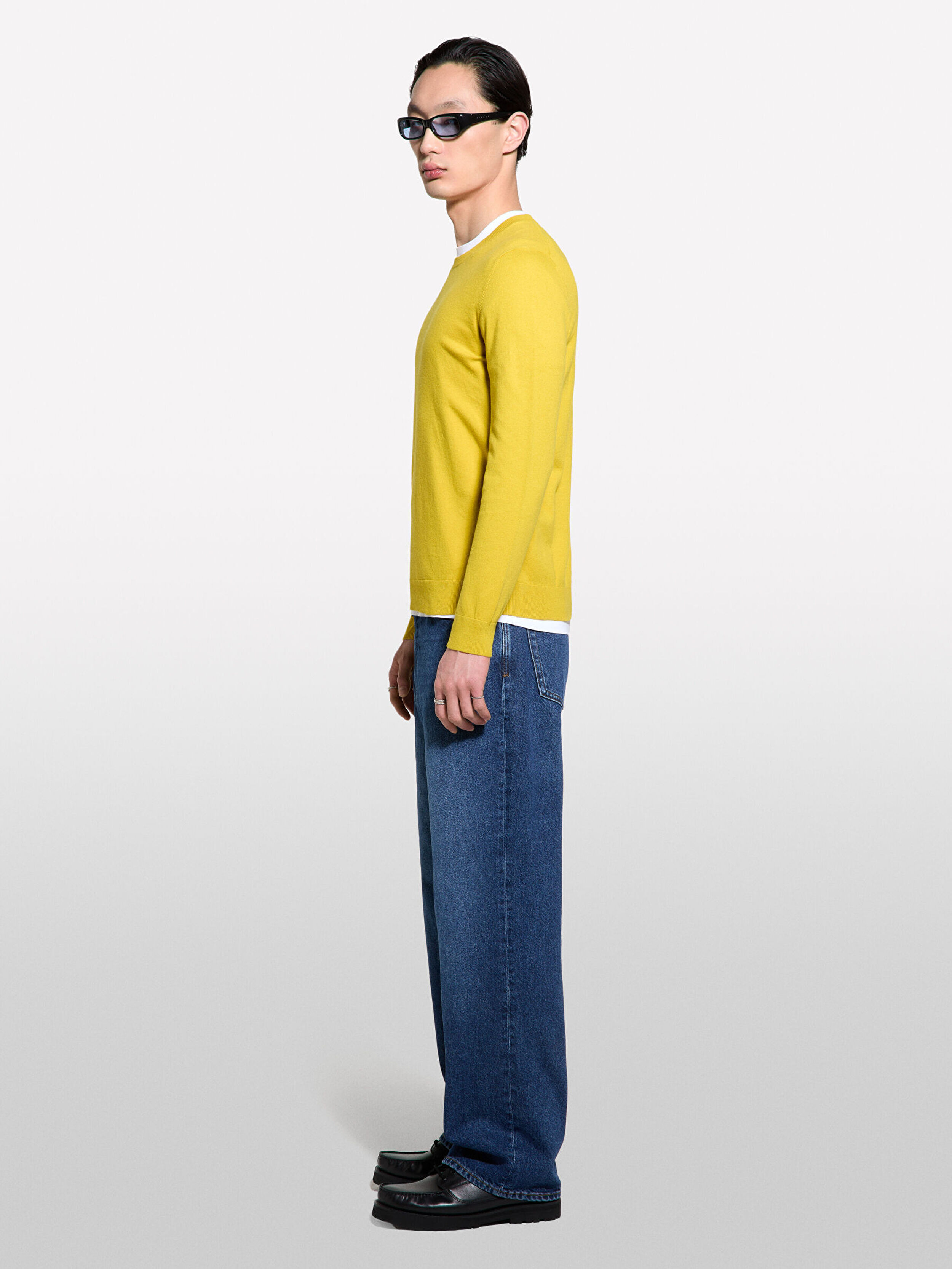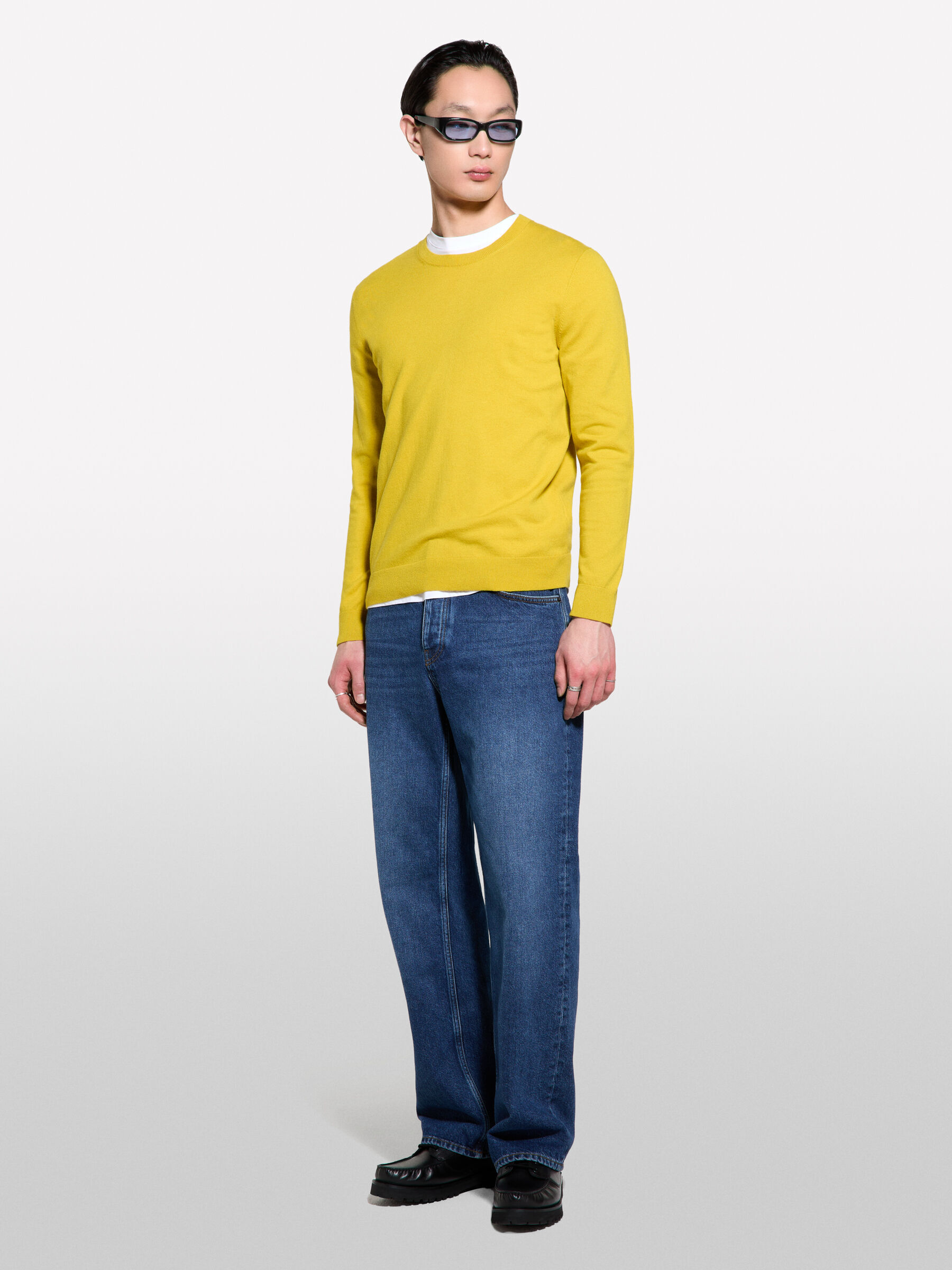 Erkek Hardal Sarı Pamuk Karışımlı Bisiklet Yaka Regular Fit Kazak 325P10F2S1C78-26B