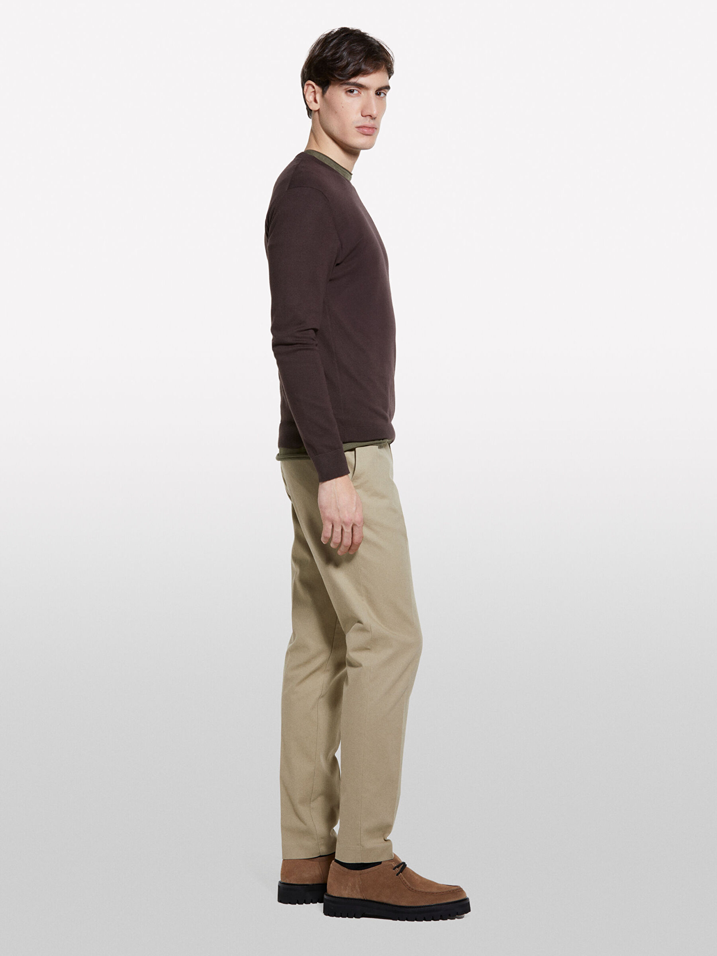 Erkek Koyu kahverengi Pamuk Karışımlı Bisiklet Yaka Regular Fit Kazak 325P10F2S1C78-3L1