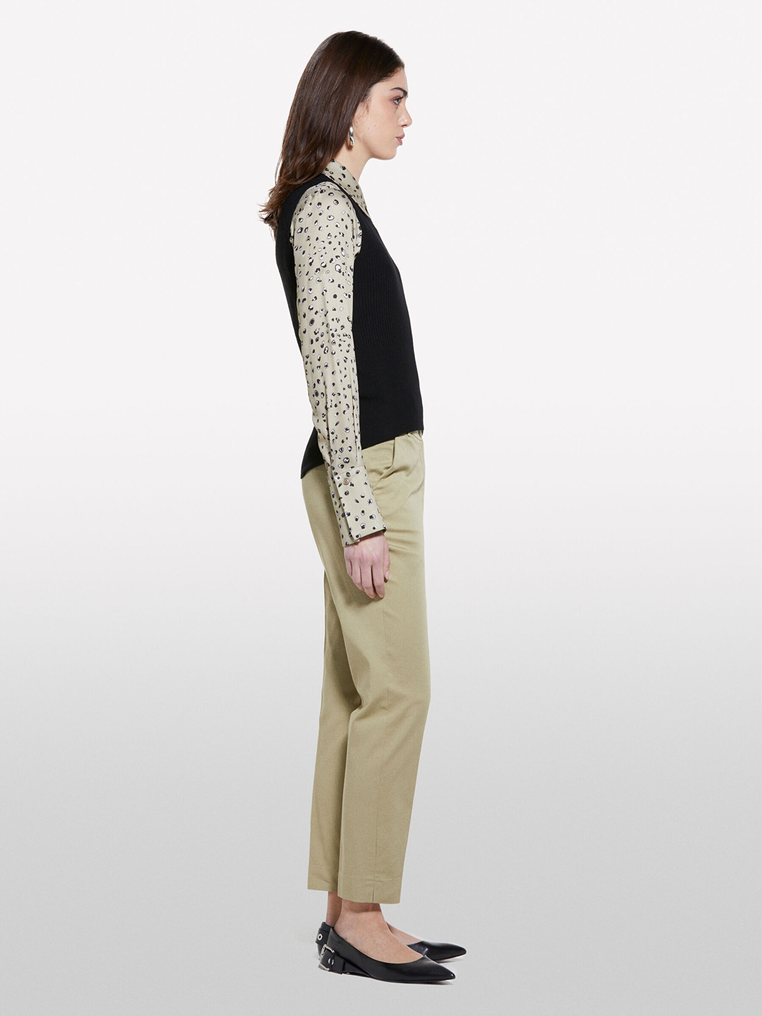 Kadın Kum Rengi Streç Pamuklu Normal Bel Chino Pantolon